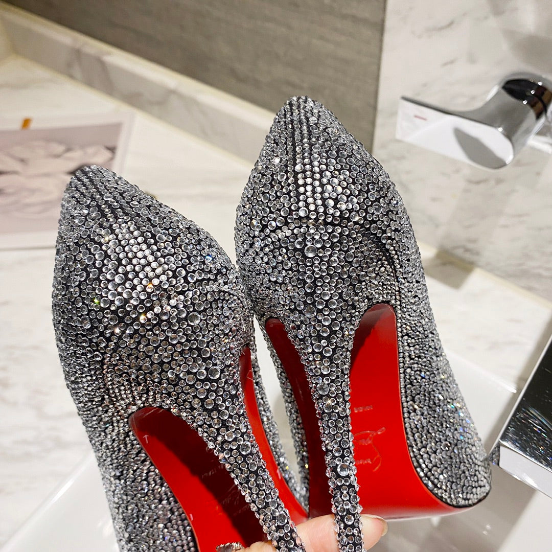 CL Kate Strass Degrade Pumps 100mm Suede Black