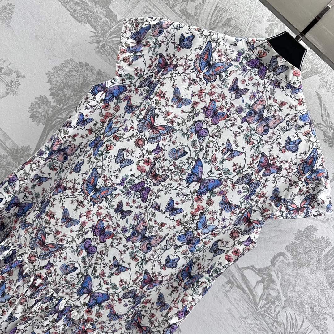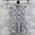 CD Short Dress White Cotton Muslin with Multicolor Motif