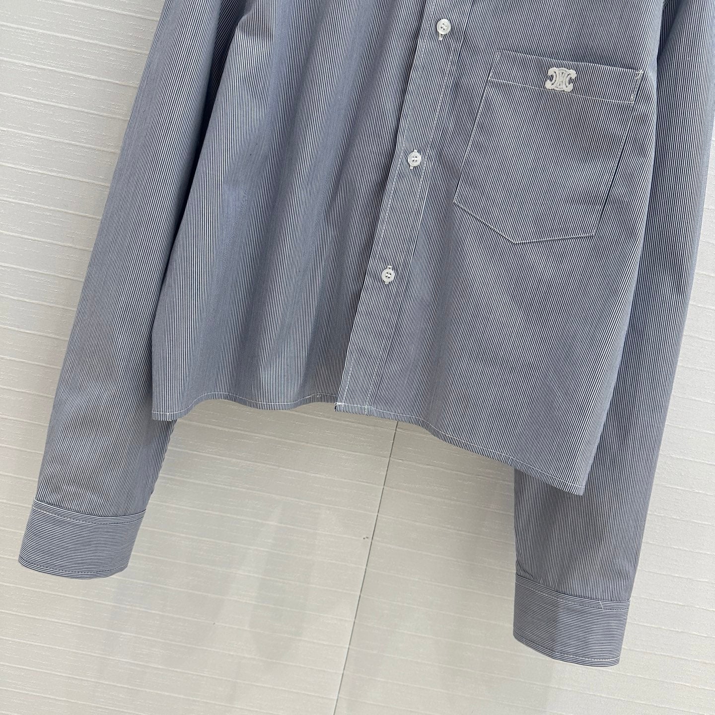 Celine 25 Striped Short Shirt Blue Cotton