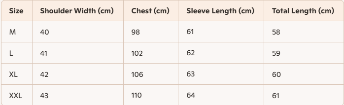 - Size : M , L, XL, XXL