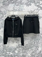 Prada 25 Hooded Jacket and Skirt set Black and Gray Cotton