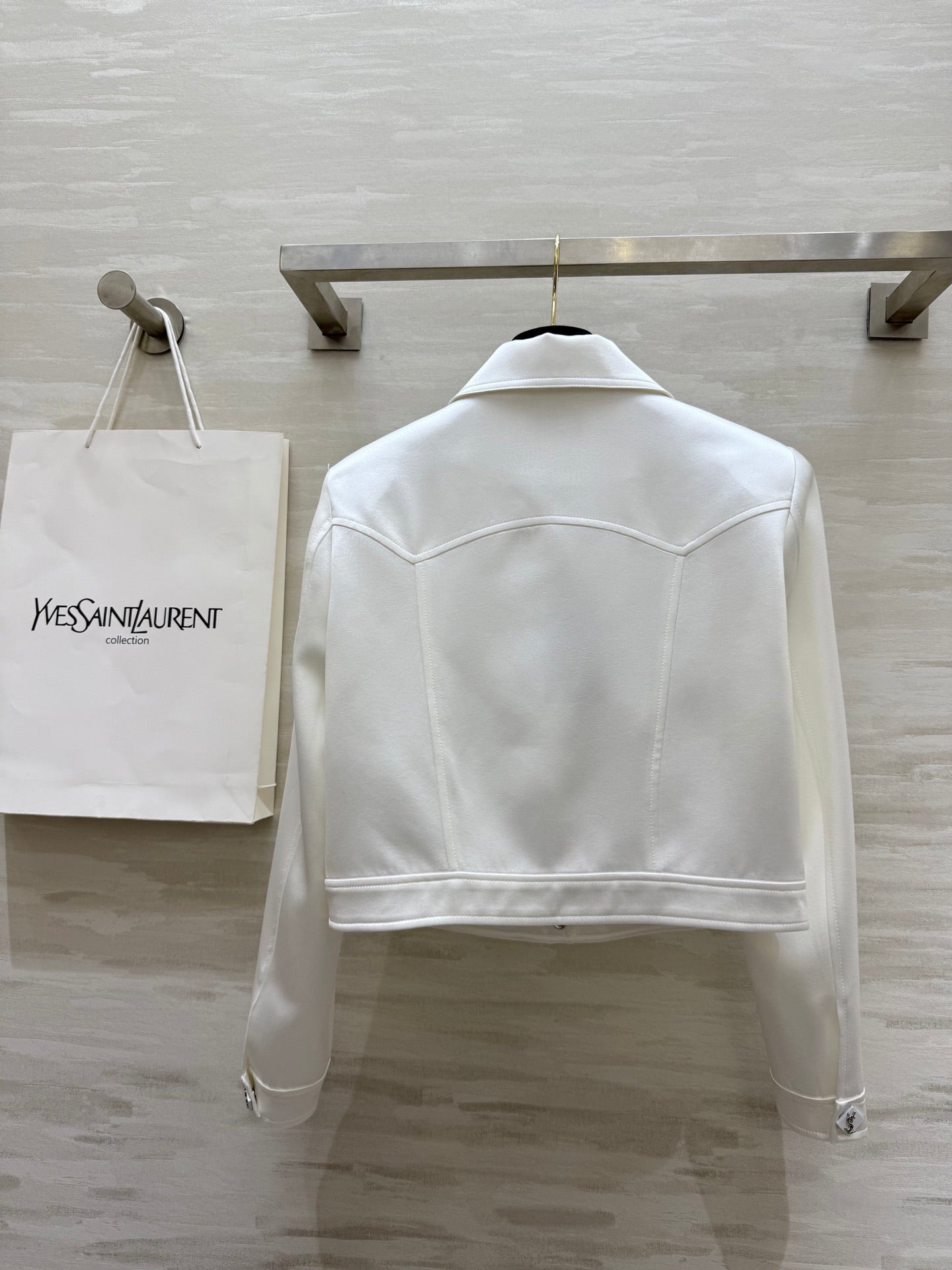 YSL 25 Short Jacket White Acetic Acid Cracked Fabric