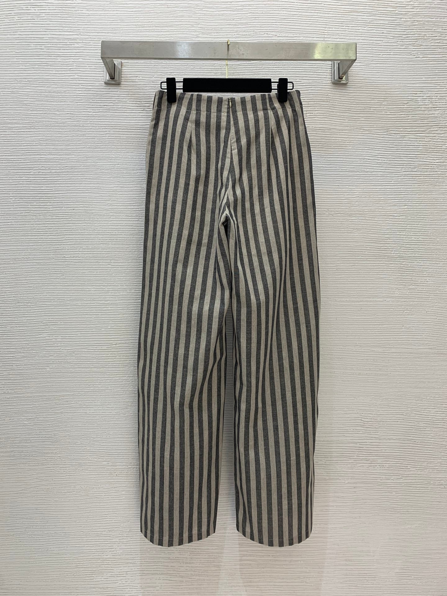 YSL Striped Two-piece Suit Beige mix Grey Linen