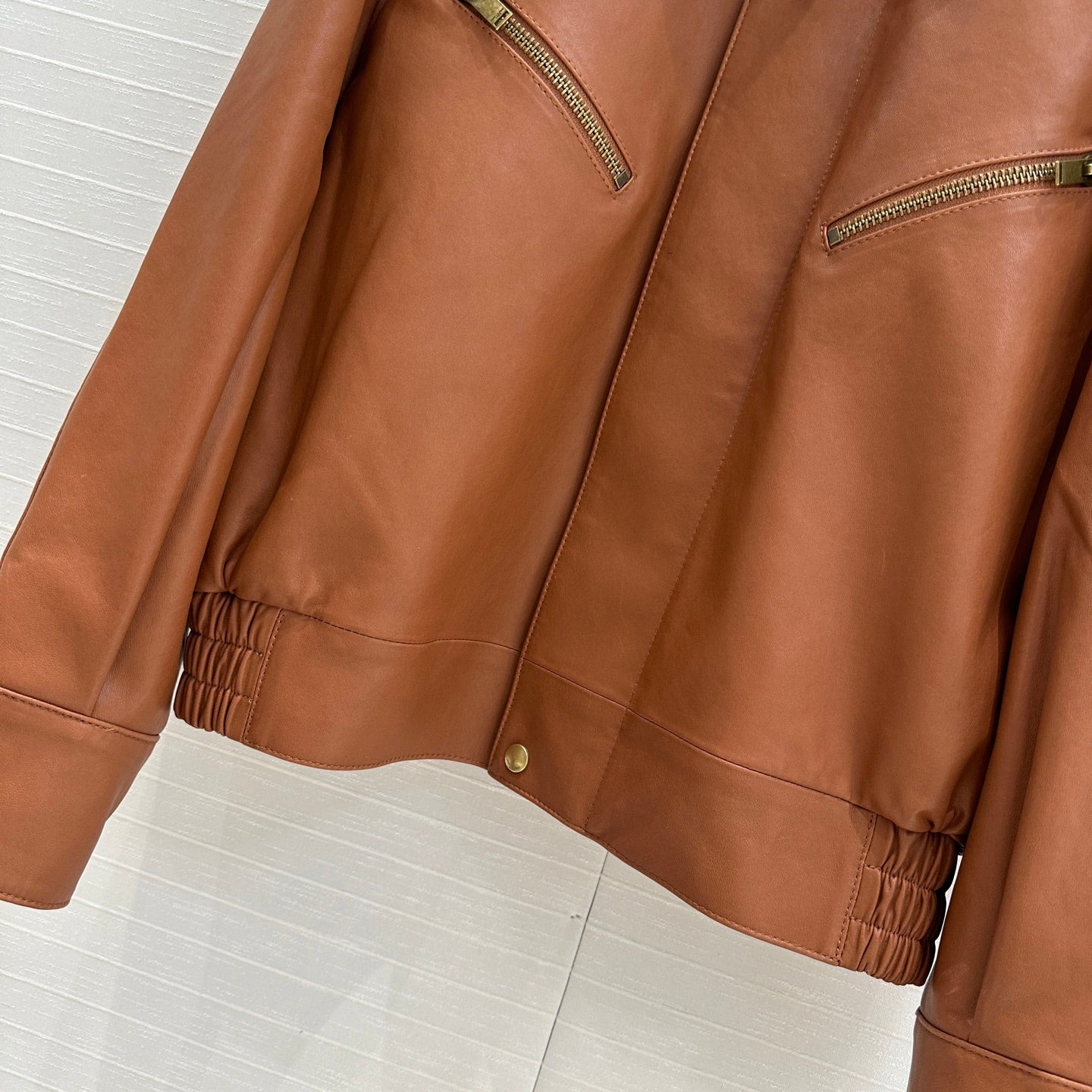 YSL Double Pocket Silhouette Jacket Brown Lambskin