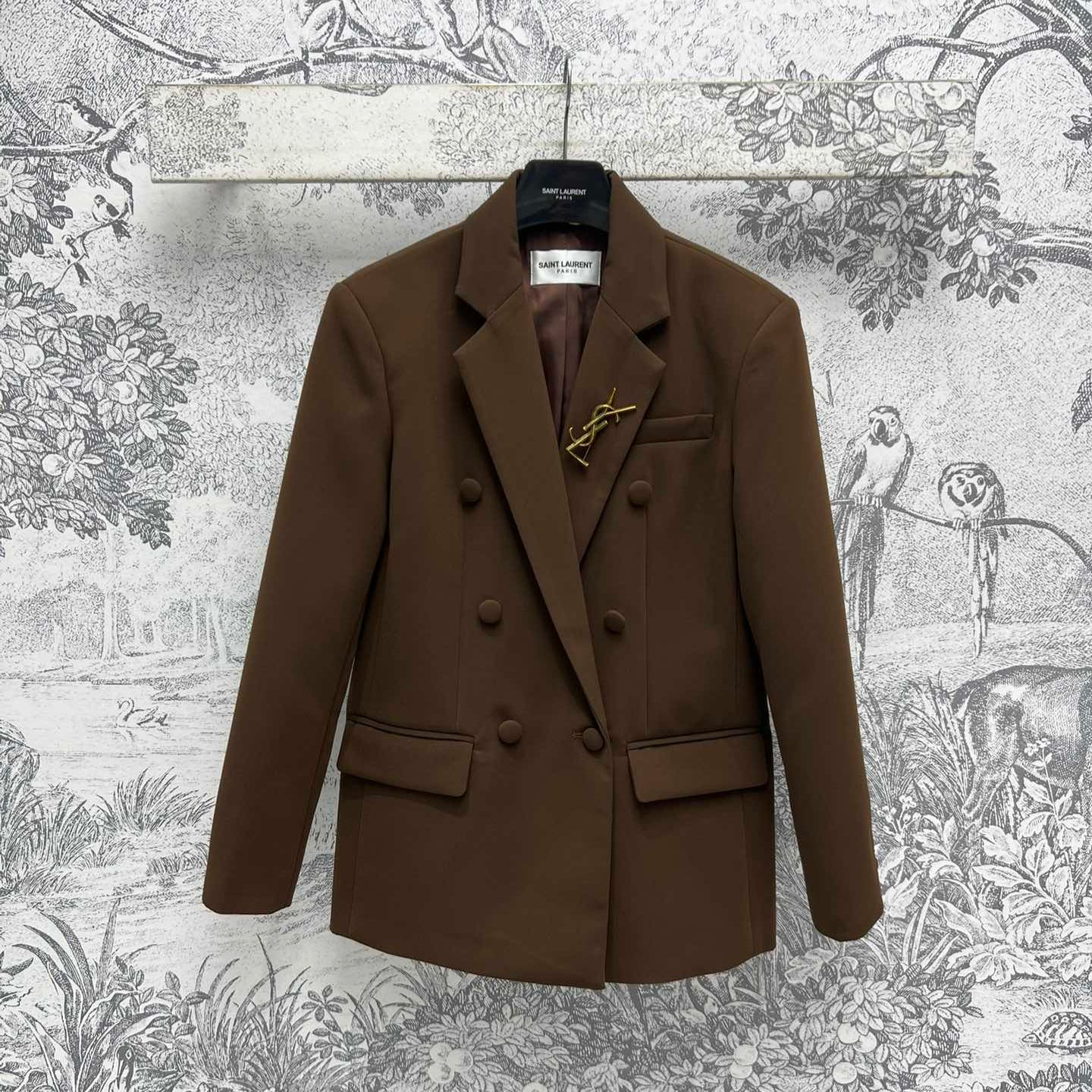 YSL Right-angle Shoulder Silhouette Jacket Brown Lambskin