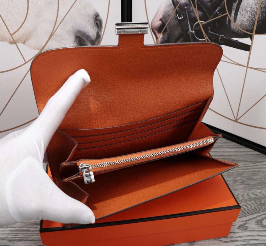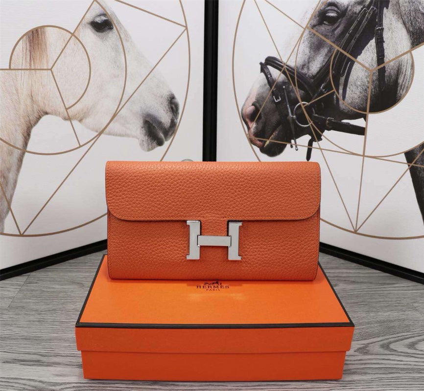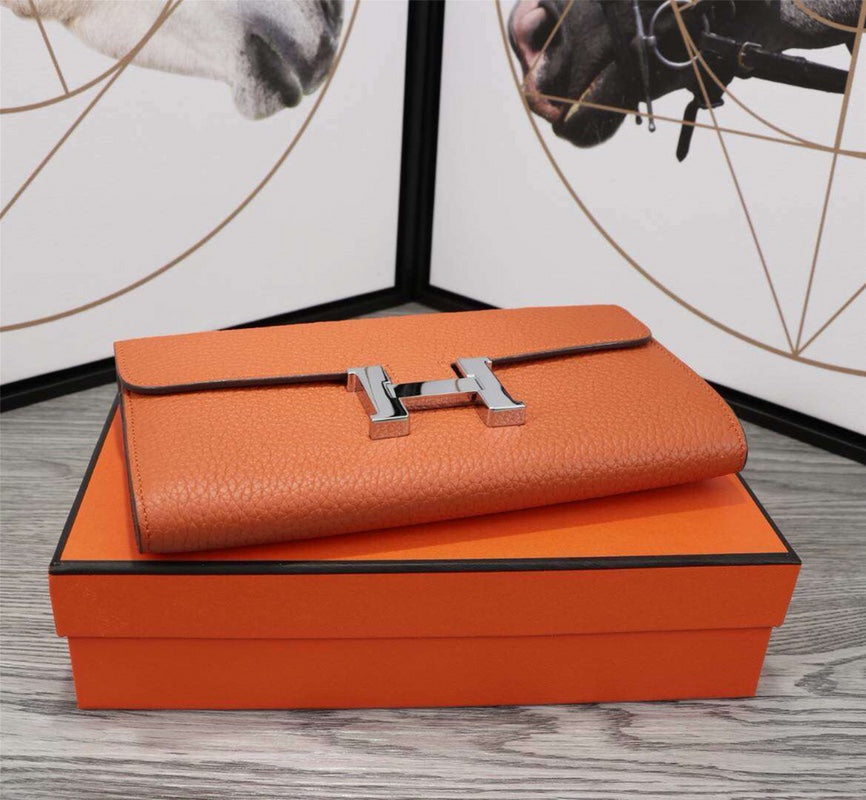 HM CLUTCH CONSTANCE 22 ORANGE CALFSKIN SILVER HARDWARE