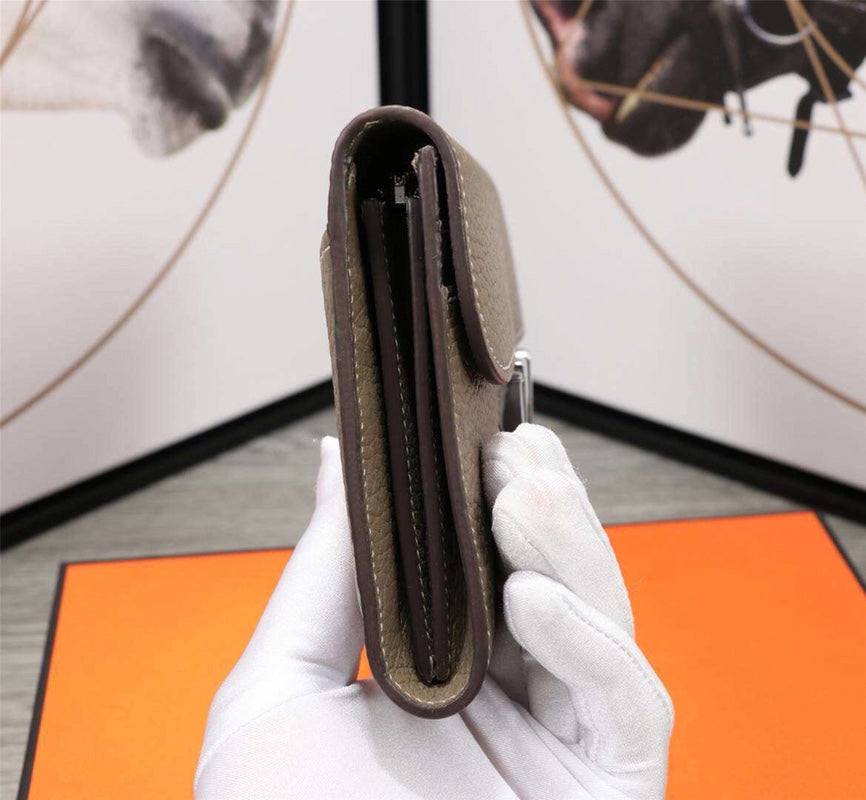 HM CLUTCH CONSTANCE 22 KHAKI CALFSKIN SILVER HARDWARE