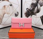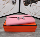 HM CLUTCH CONSTANCE 20.5 LIGHT PINK CALFSKIN SILVER HARDWARE