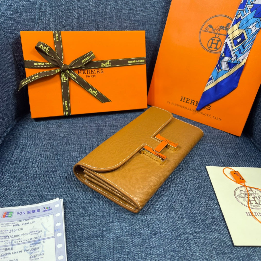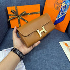 HM CLUTCH CONSTANCE 22 BRONZE CALFSKIN GOLD HARDWARE
