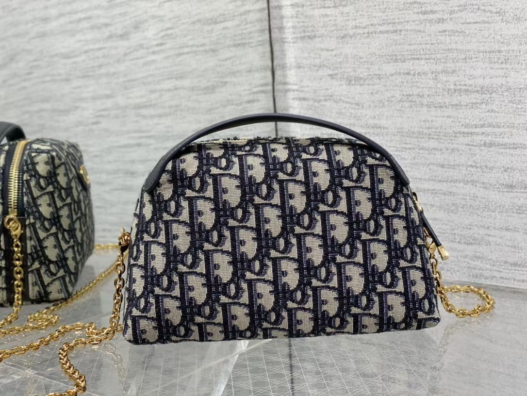 CD Saddle Pouch With Chain Blue Obique Embroidery