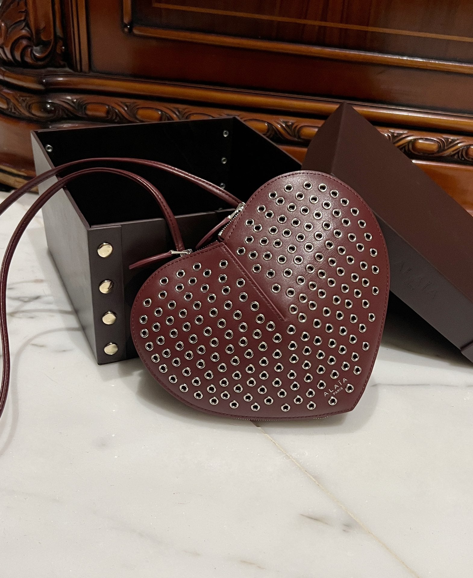 Le Coeur 21cm Burgundy Metal Rivet Calfskin Shouder 243047