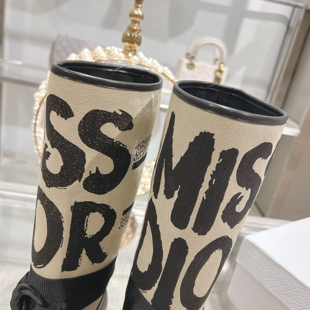 CD D-Major Boot Black Mix Beige Calfskin And Canvas
