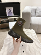 CD Ankle Boots Brown Moss Green Elastic Fabric