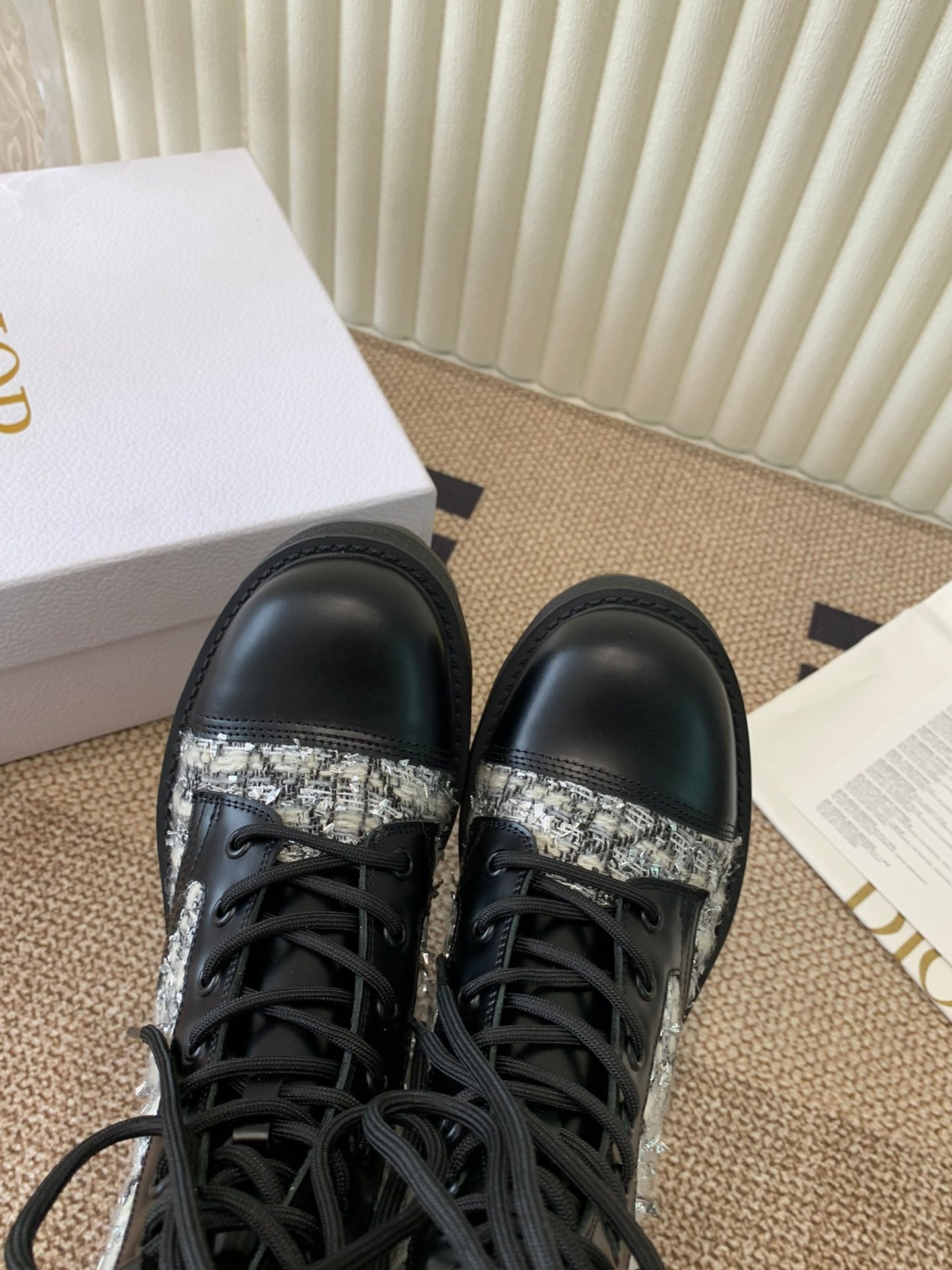 CD D-Unit Ankle Boot In White Mix Black Tweed Fabric And Cowhide 113476