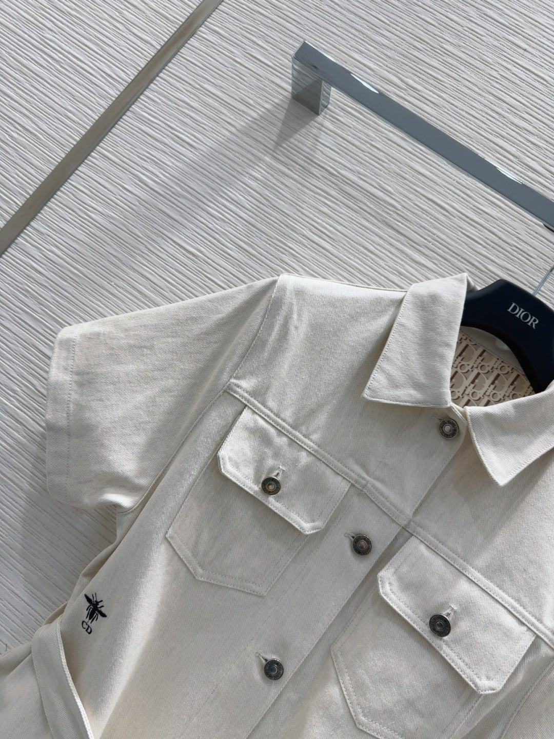 CD 2025 Short-sleeved Shirt Dress Light Beige Cotton