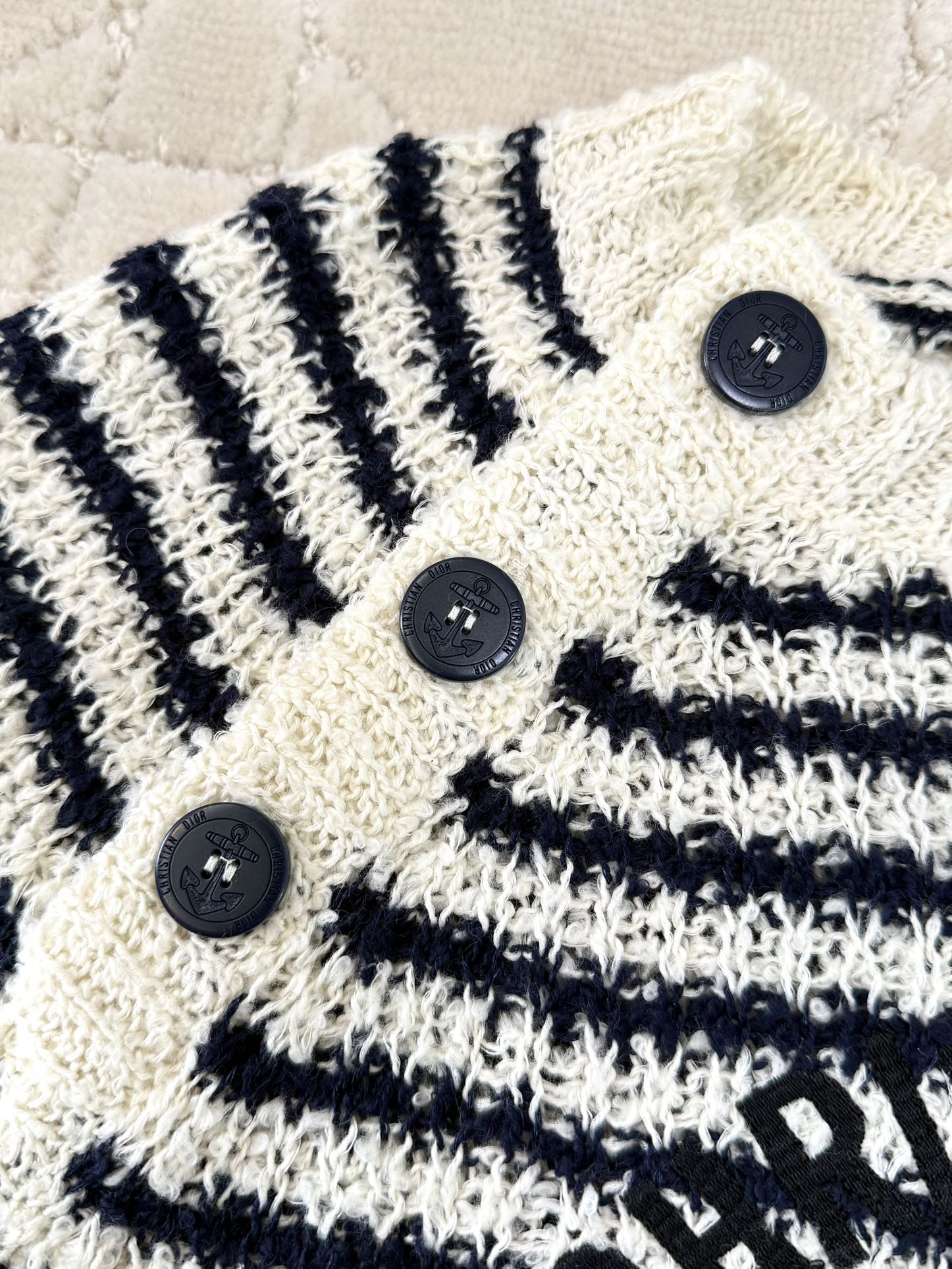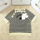 CD 2025 Striped Knitted Short Sleeves Beige mix Black Cotton
