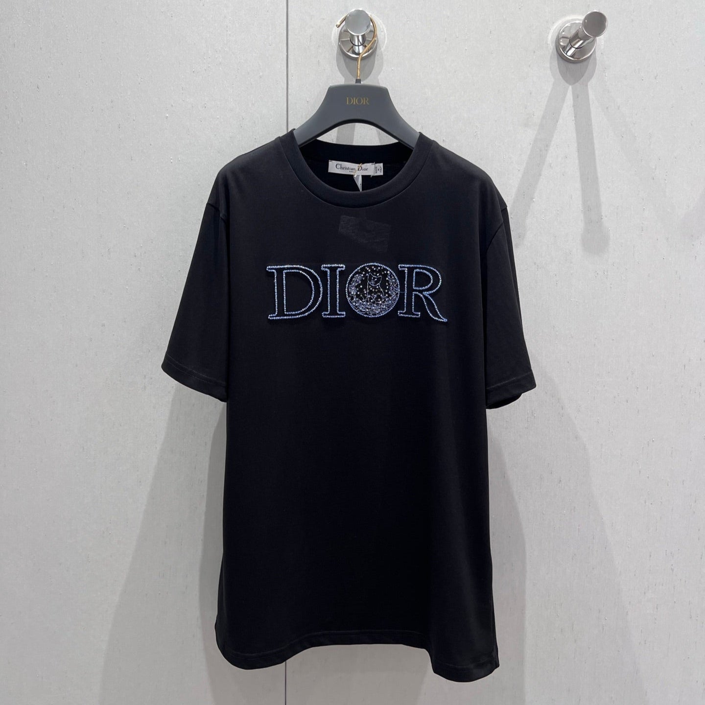 CD 25 Embroidered Grass Cat Short Sleeve Black cotton 217452
