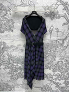 CD 25 Halter-neck Backless Dress Purple Black Wool Fabric