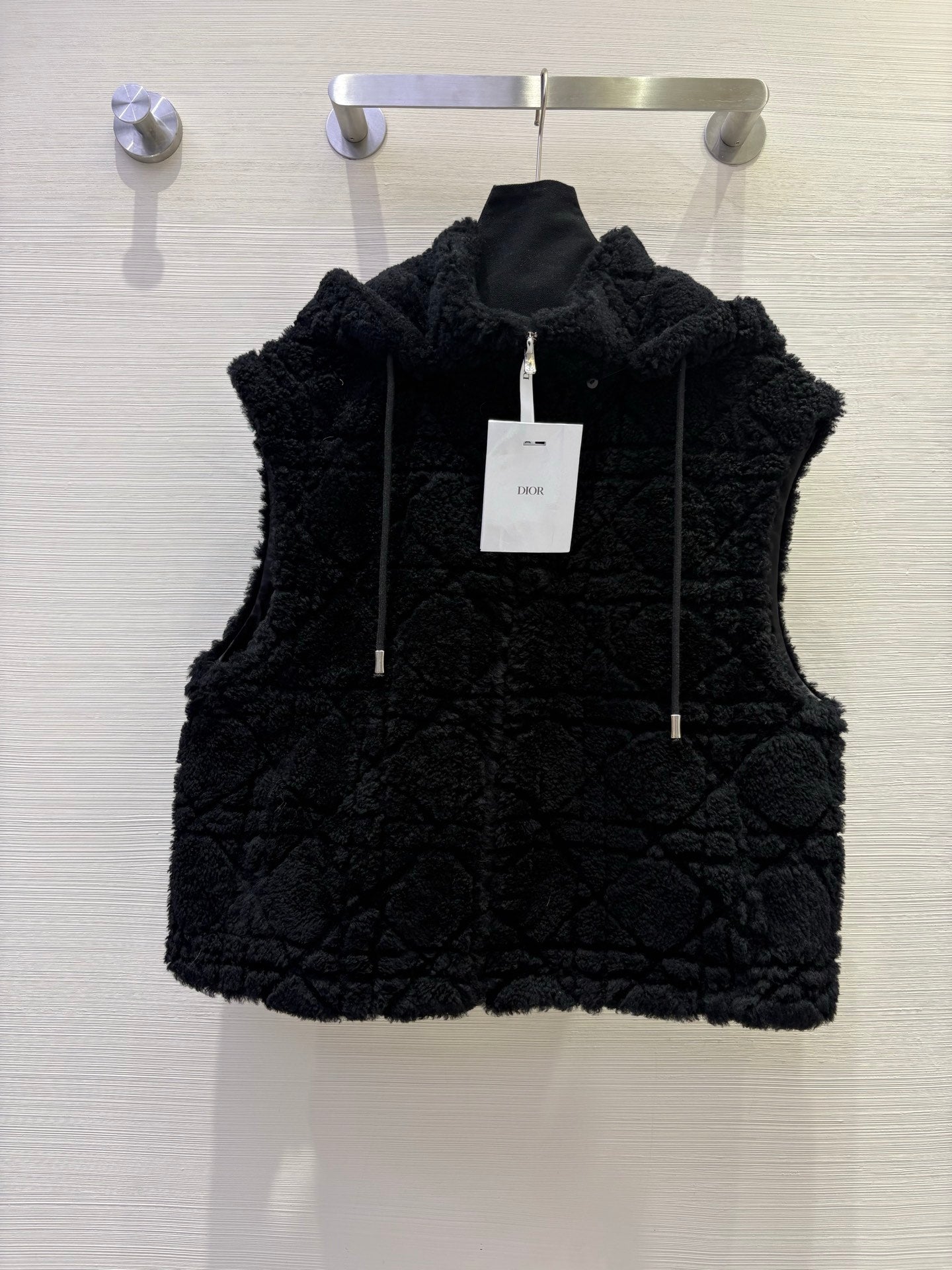 CD 25 Hooded Vest Leather And Fur Ivory White
