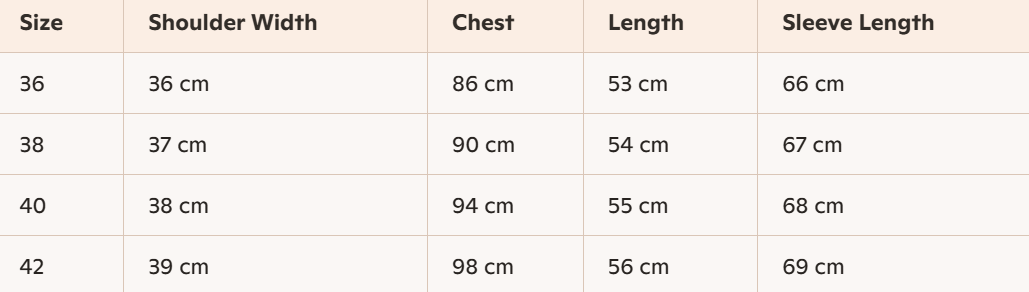 - Size : 36, 38, 40, 42