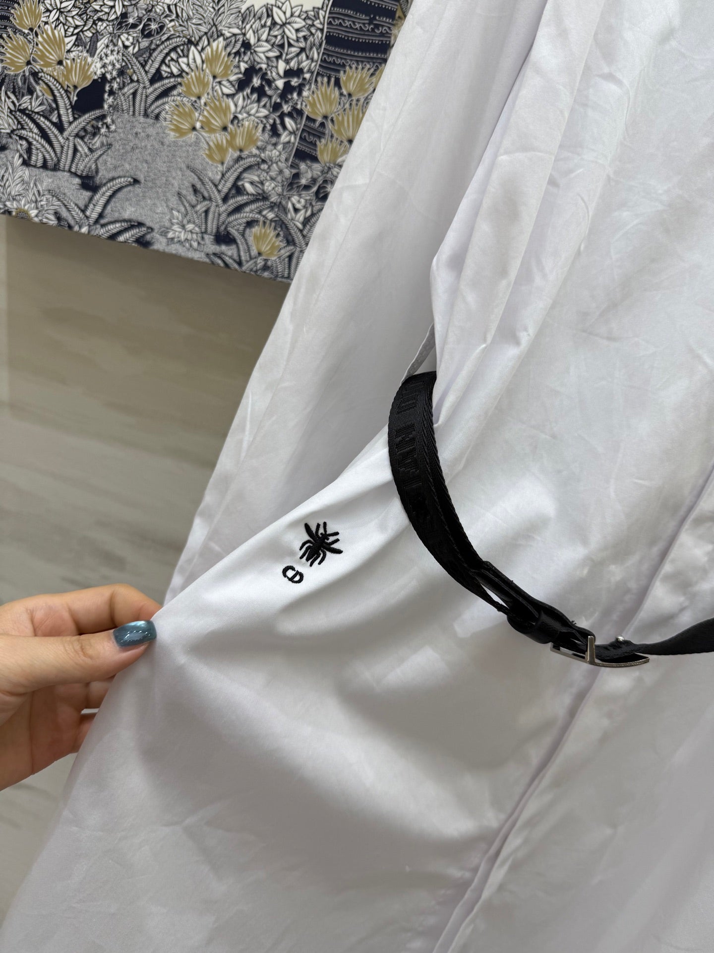 CD Belt Shirt Dress White cotton