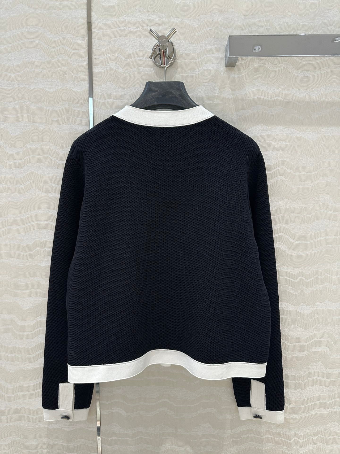 CD Round Neck Cardigan Jacket Black Wool Cotton