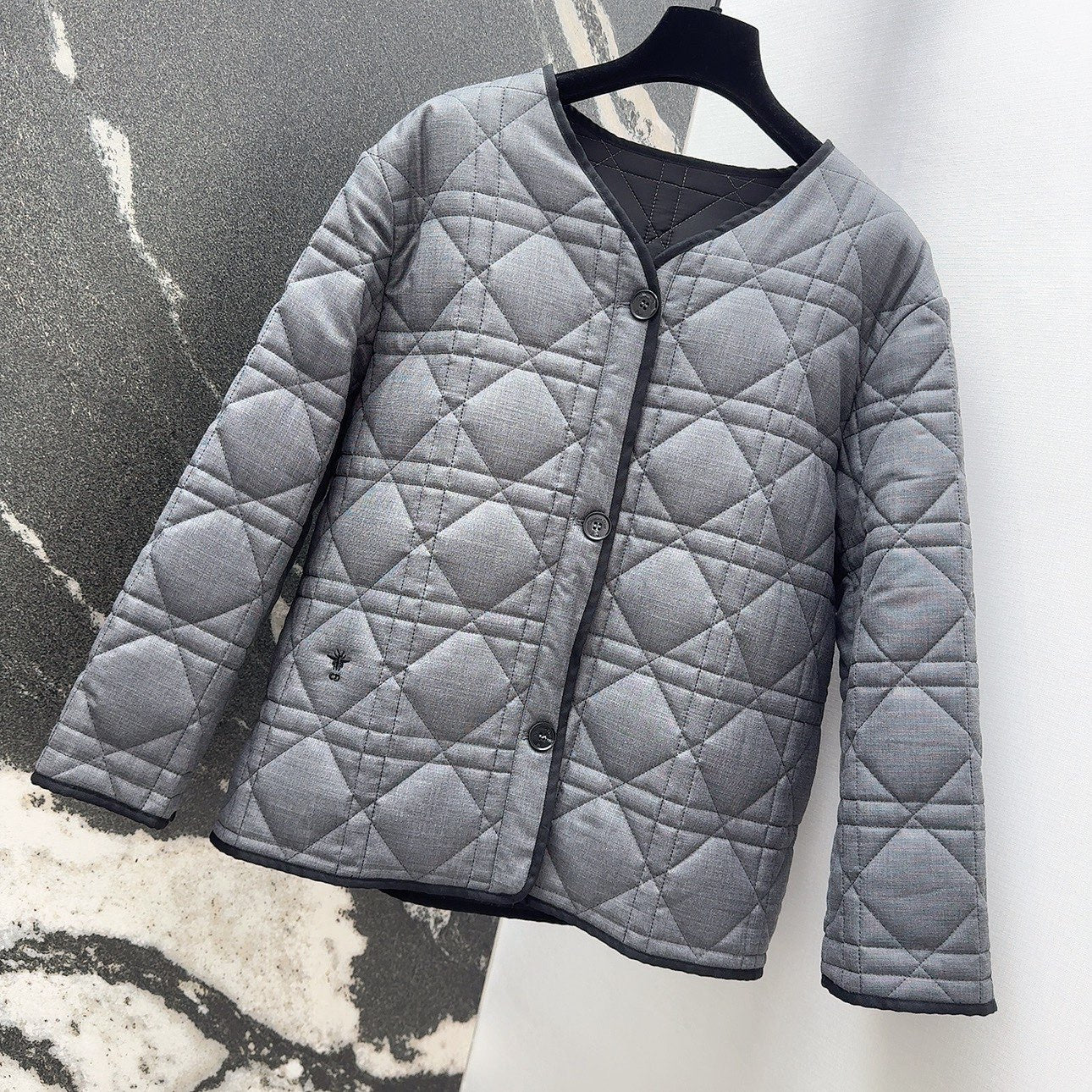 CD 25 Plaid Quilted Jacket Grey Cotton