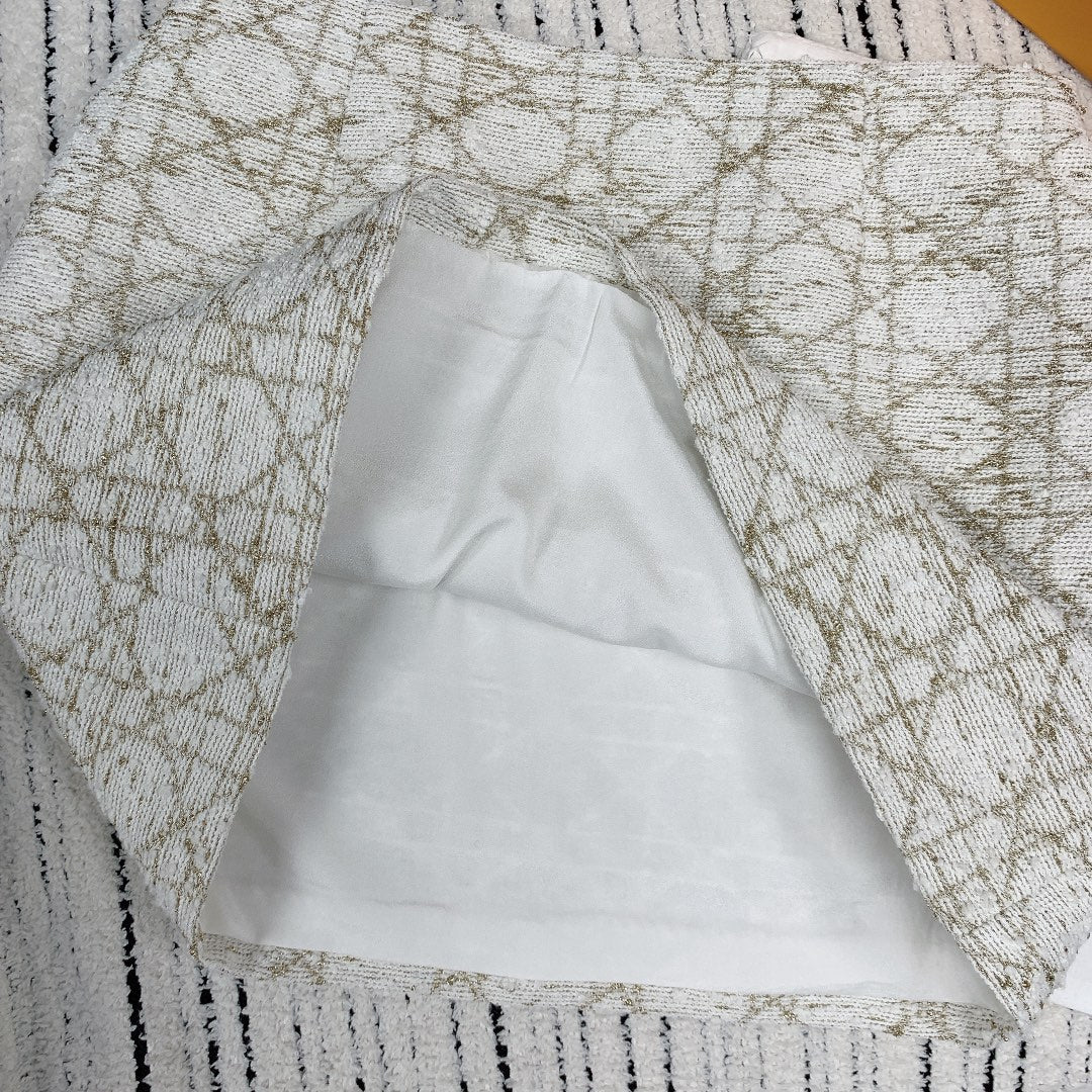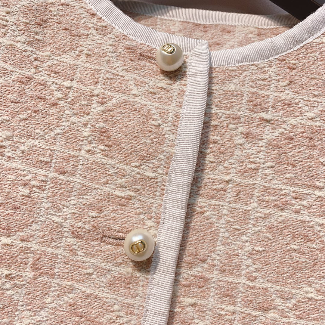 CD 25 Plaid Quilted Lapel Set Beige Cotton
