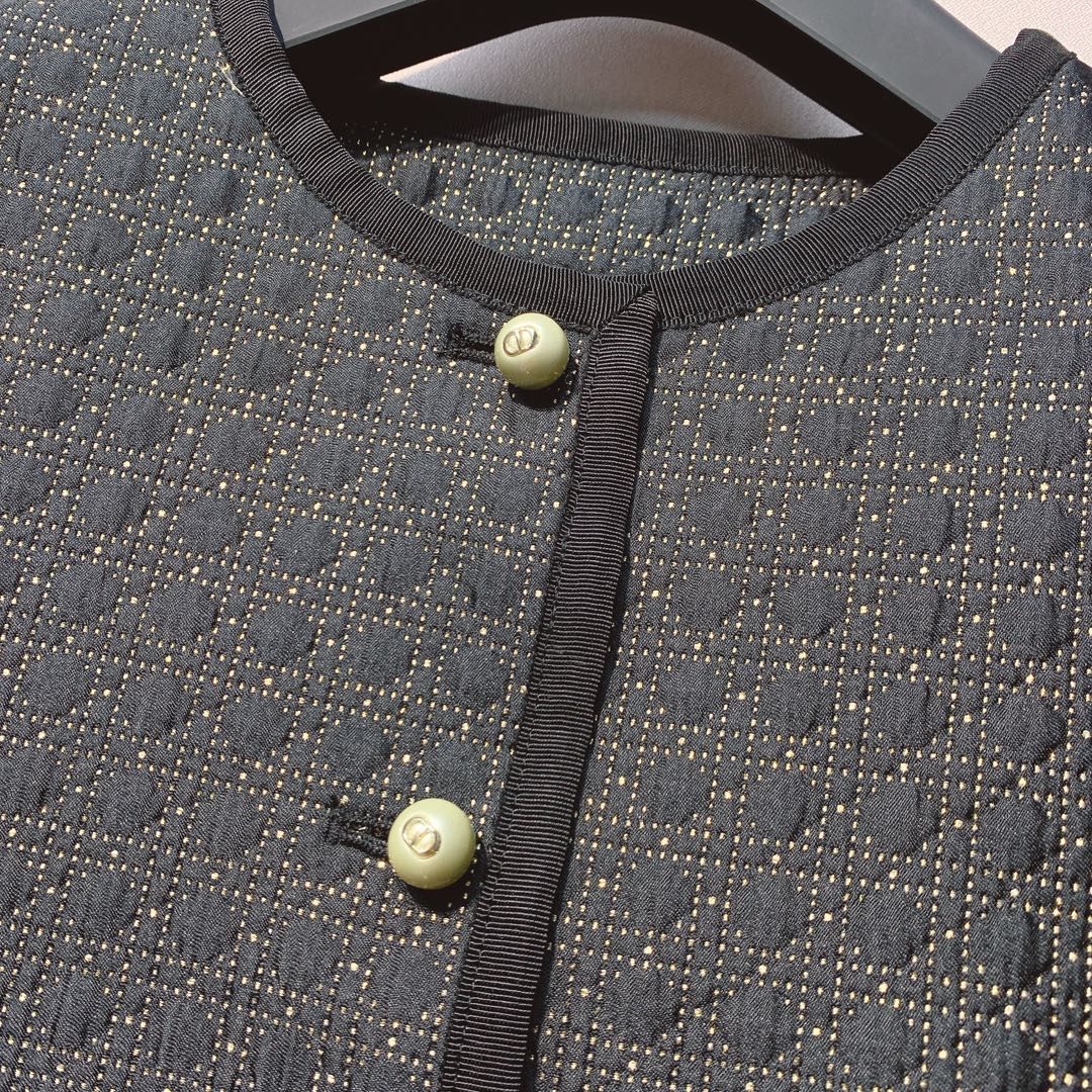 CD 25 Plaid Quilted Lapel Set Black Cotton