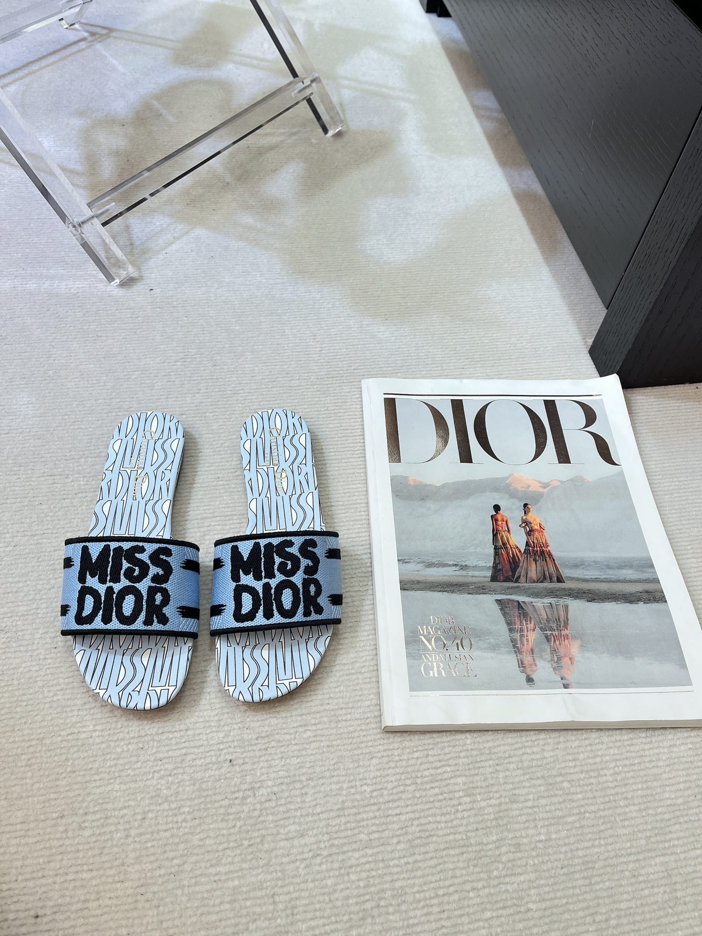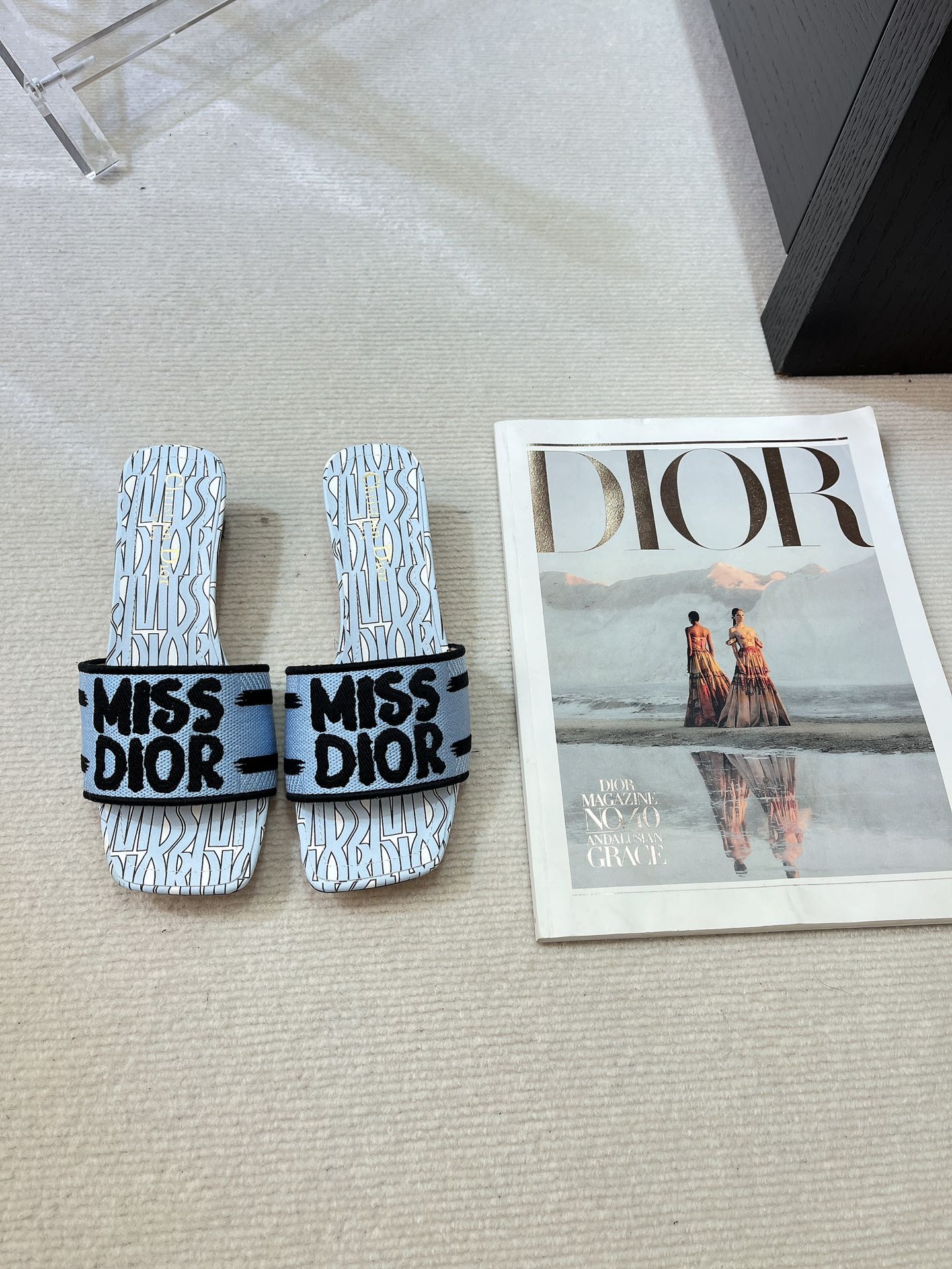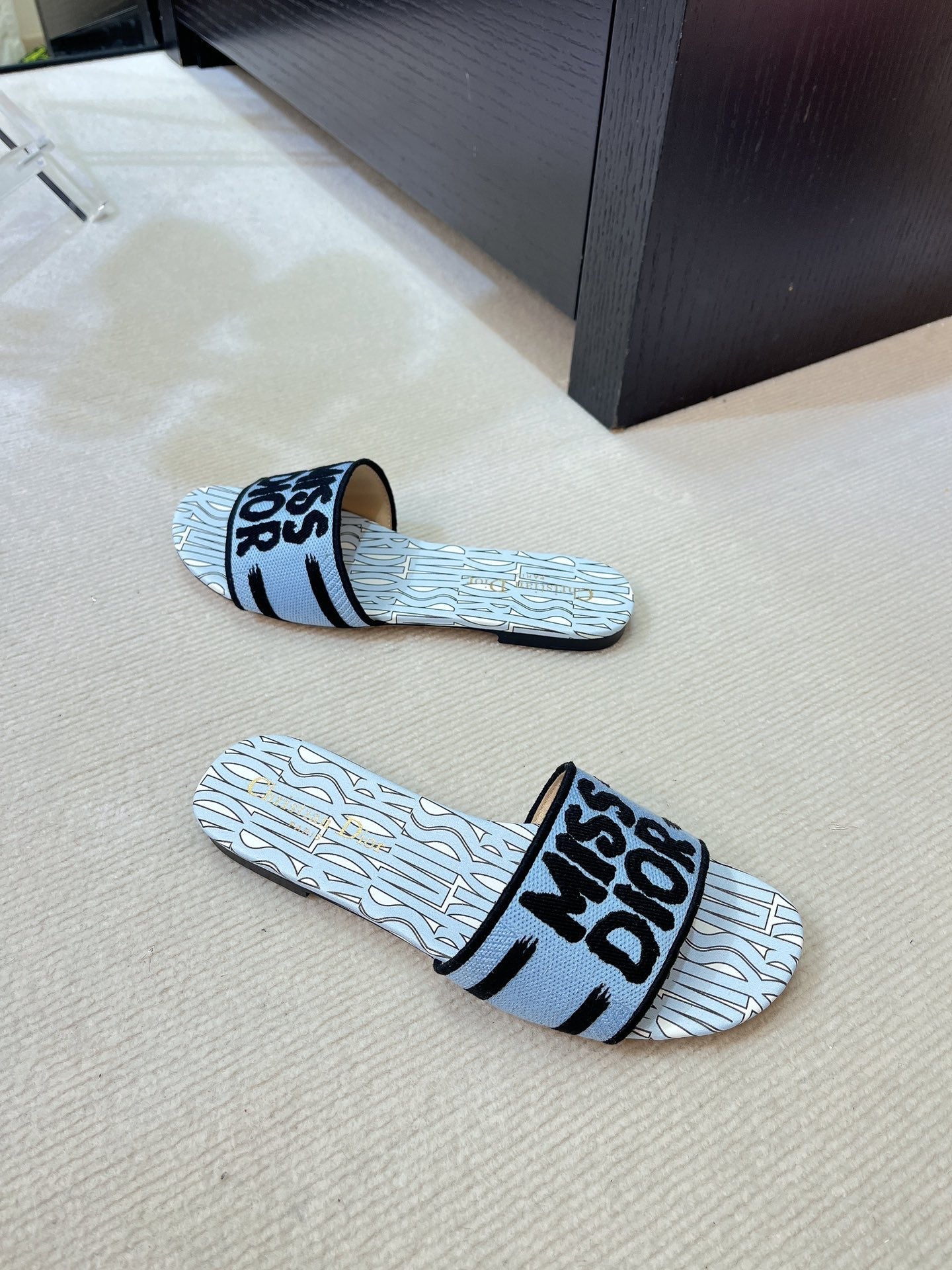 dway heeled slide 35 embroidered cotton cloud blue miss cd alllover motif
