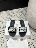 CD Dway Slide Black Mix White Embroidered Cotton