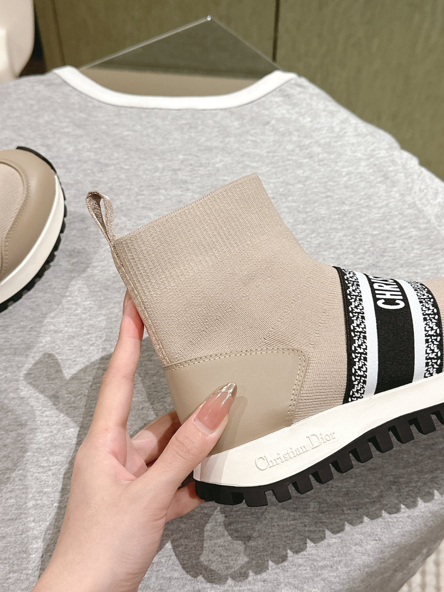 CD High-Top Sneaker 40mm Beige Stretch Wool And Lambskin