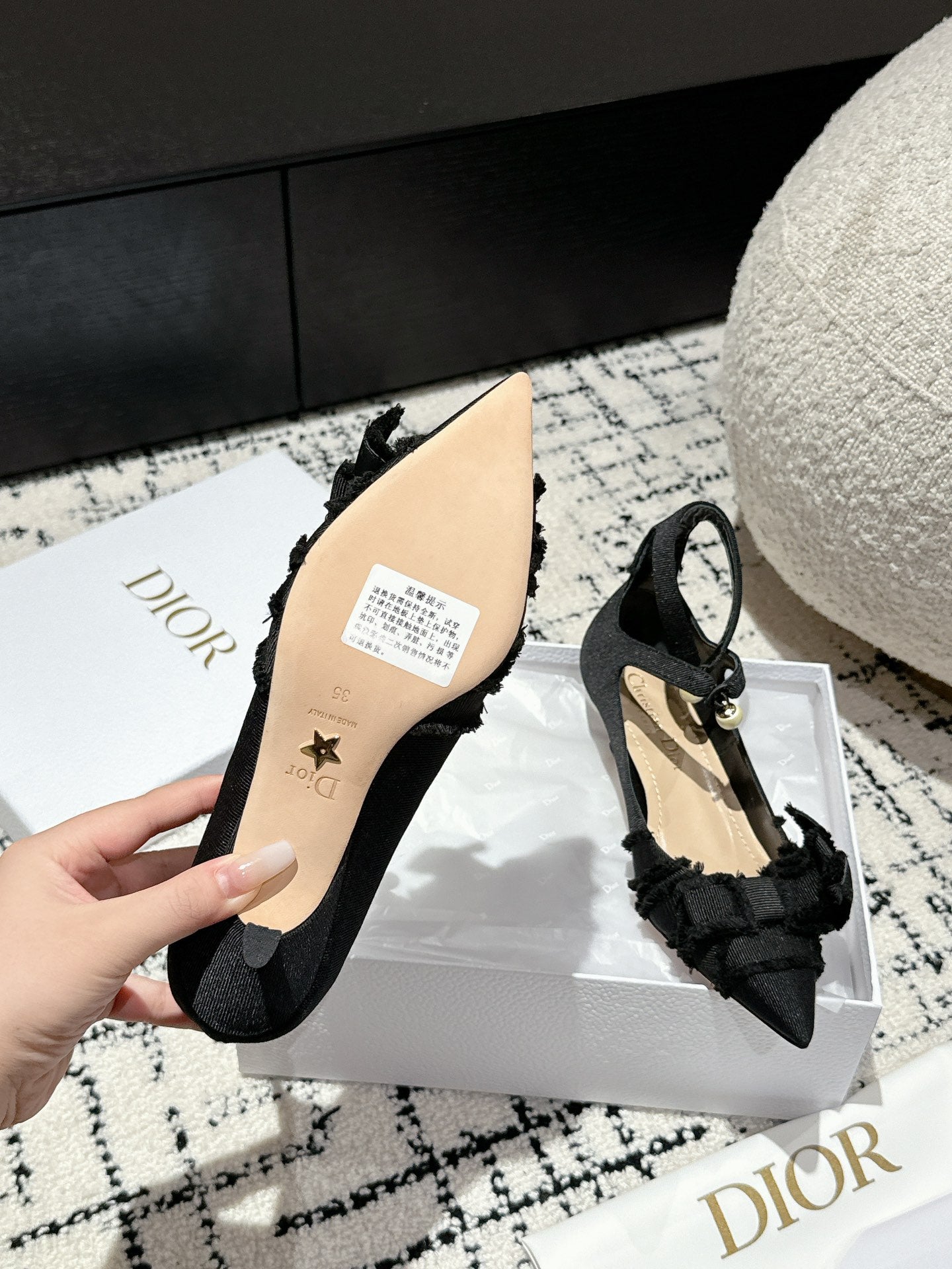CD Adiorable pump 45 Black Fringed Grosgrain