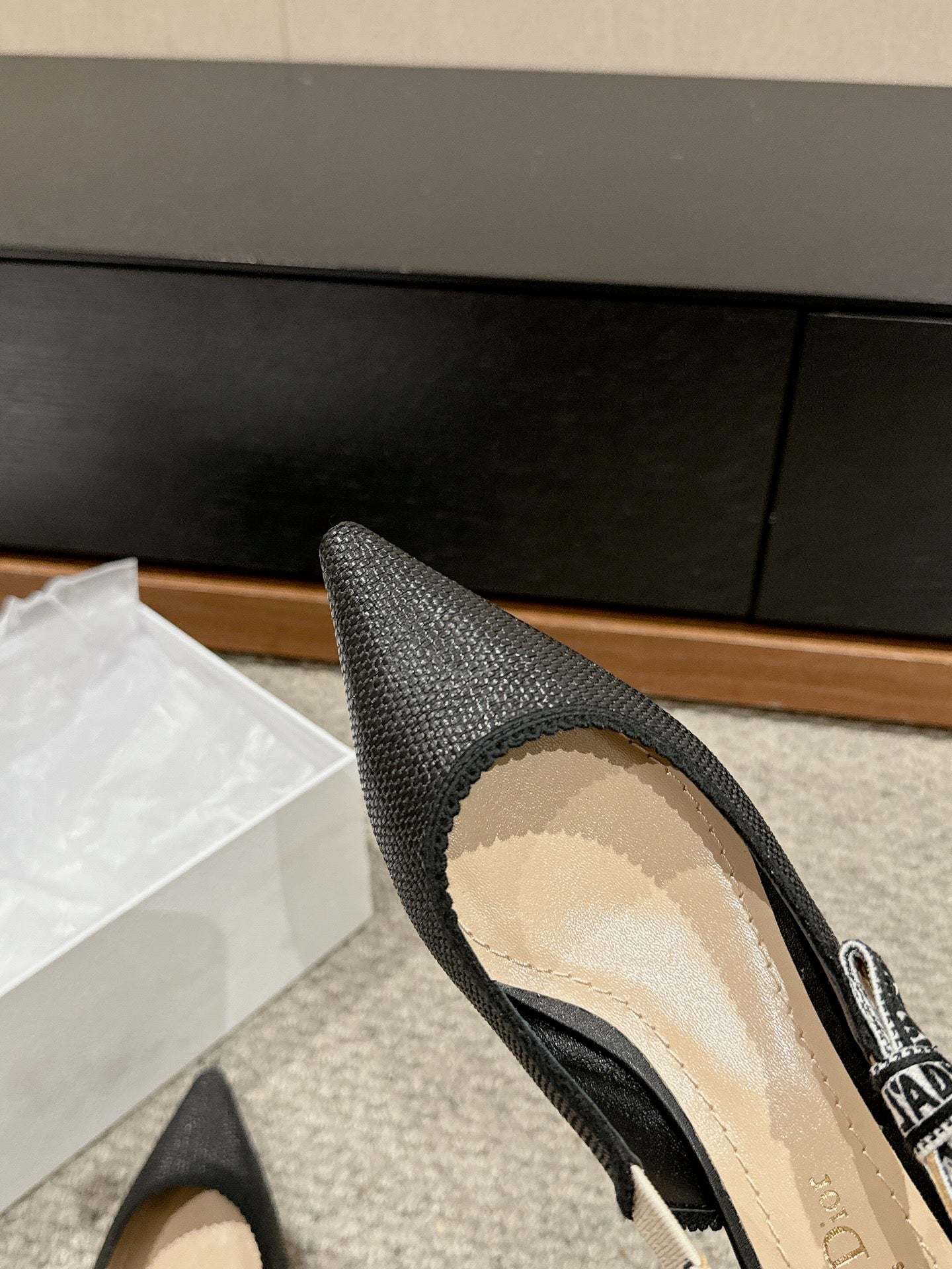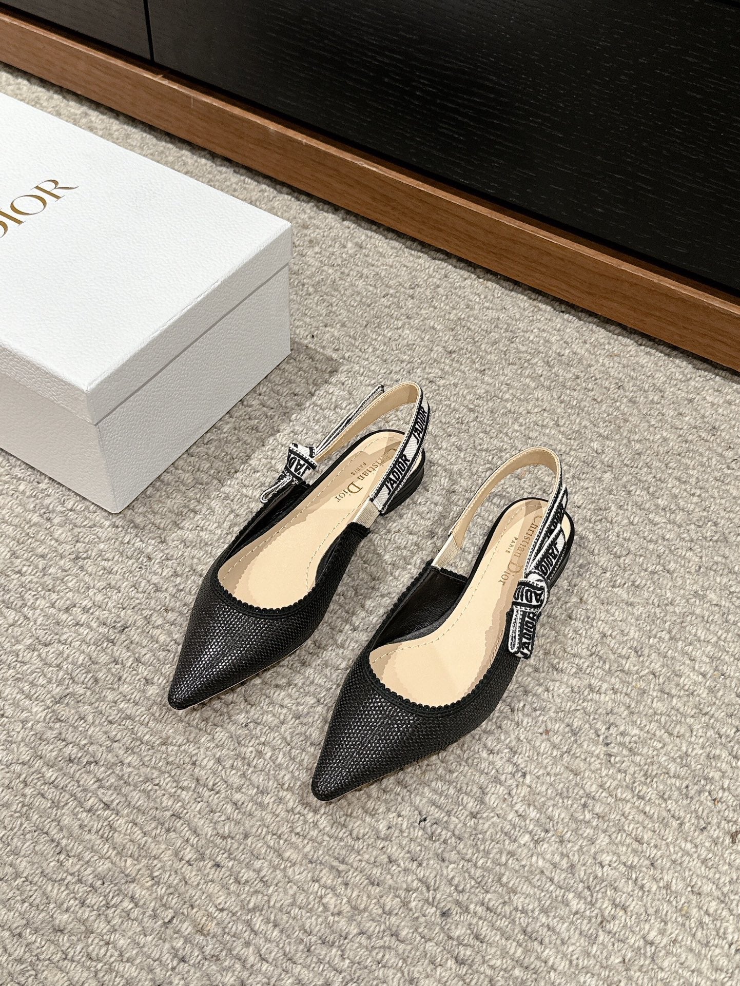 cd slingback flat black raffia lambskin