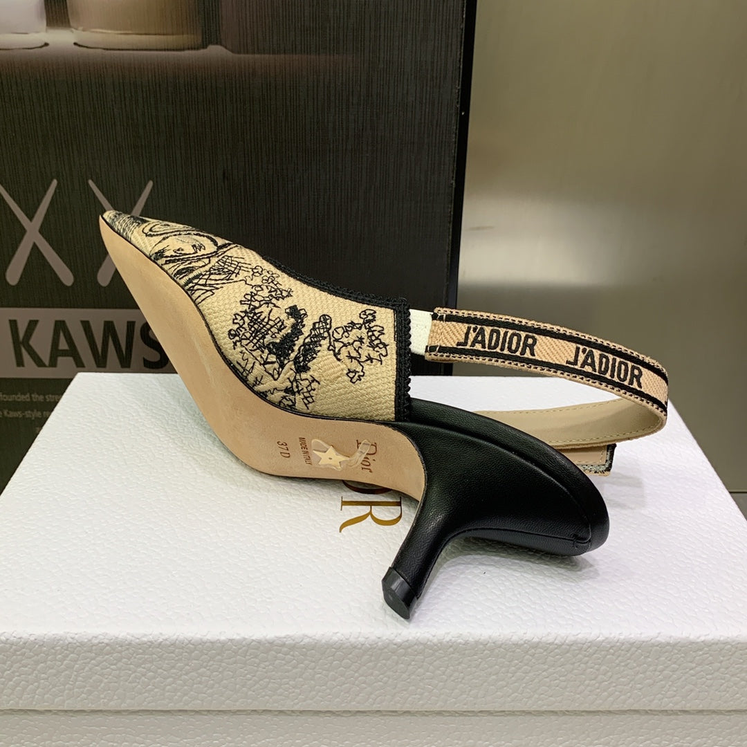 JAdior Slingback Pump 65 Black Embroidered Cotton with Gold-Tone Metallic Thread