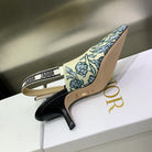 JAdior Slingback Pump 65 Duck Blue Embroidered Cotton with Gold-Tone Metallic Thread