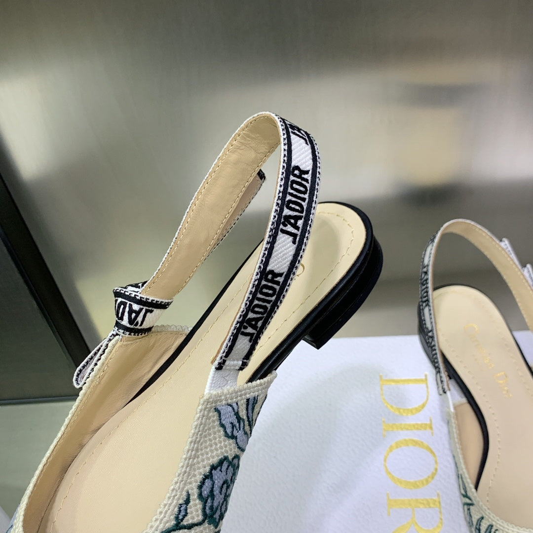 cd slingback flat embroidered cotton white calfskin resin pearl