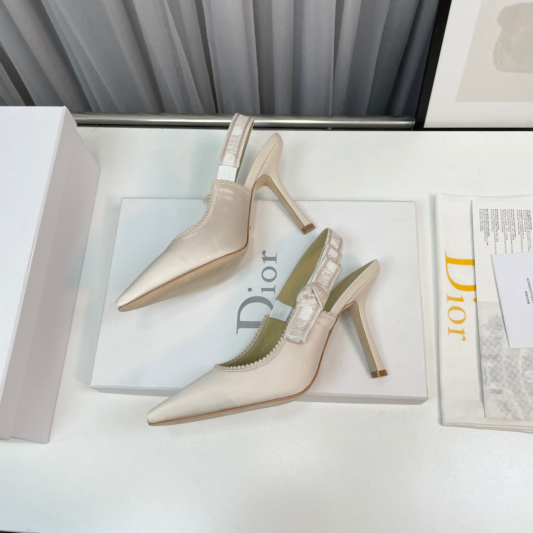 JAdior slingback pumps 65 transparent mesh beige embroidered cotton