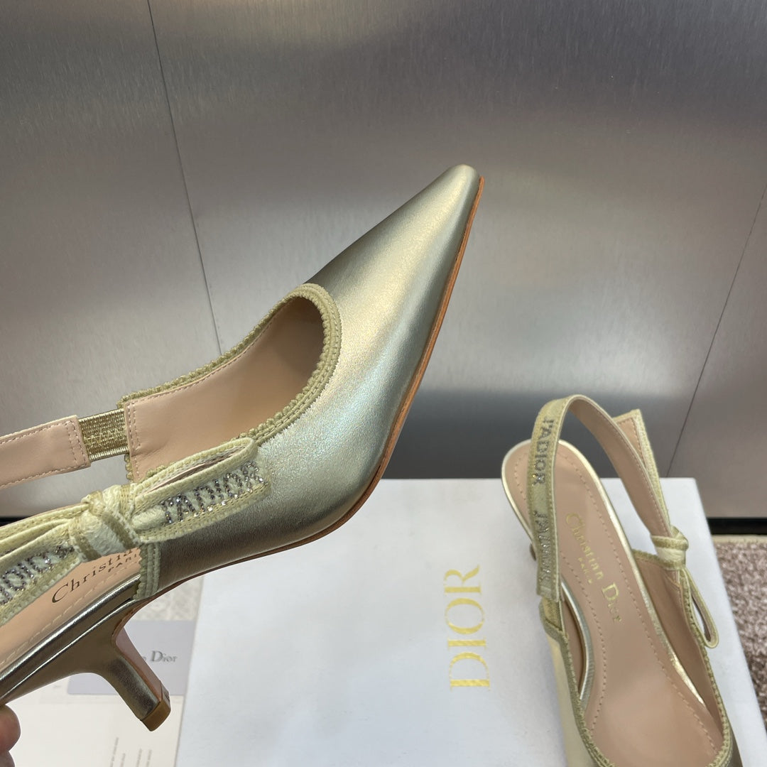 JAdior Slingback Pump 65 White and Gold-Tone Toile de Jouy Mexico Embroidered Cotton with Metallic Thread