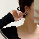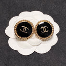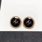 CC CIRCLE PINK GOLD ENAMEL STUD EARRINGS