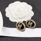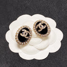 CC DIAMOND BLACK ENAMELS OVAL STUD EARRINGS