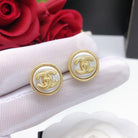 CC GOLD WHITE ENAMEL CIRCLE EARRINGS