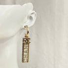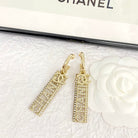 CC TEXT DIAMOND PAVED LIGHT GOLD DROP EARRINGS