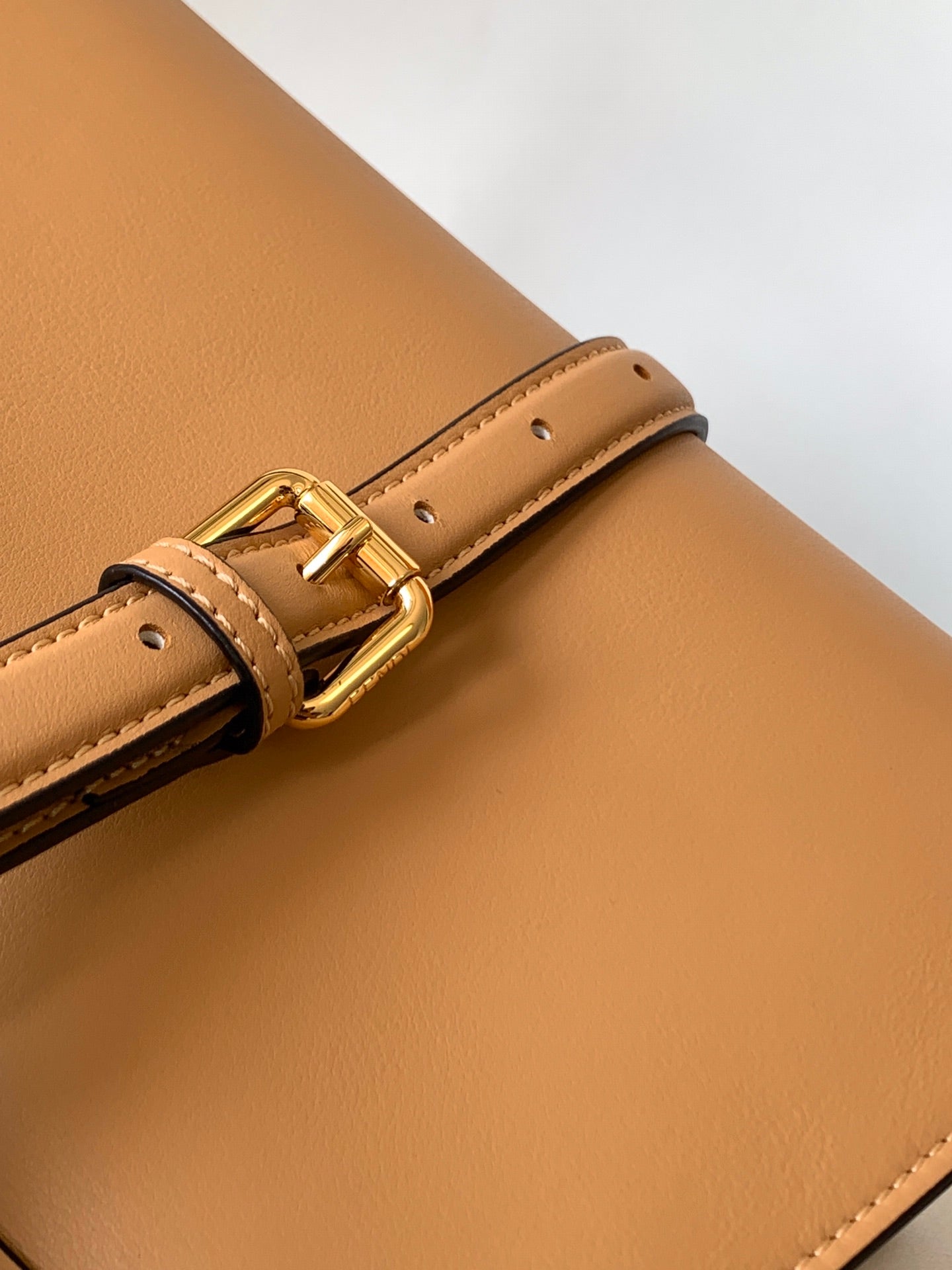 FENDI 38 BAG FF MONOGRAM FF CAMEL BROWN CALFSKIN WITH STRAP
