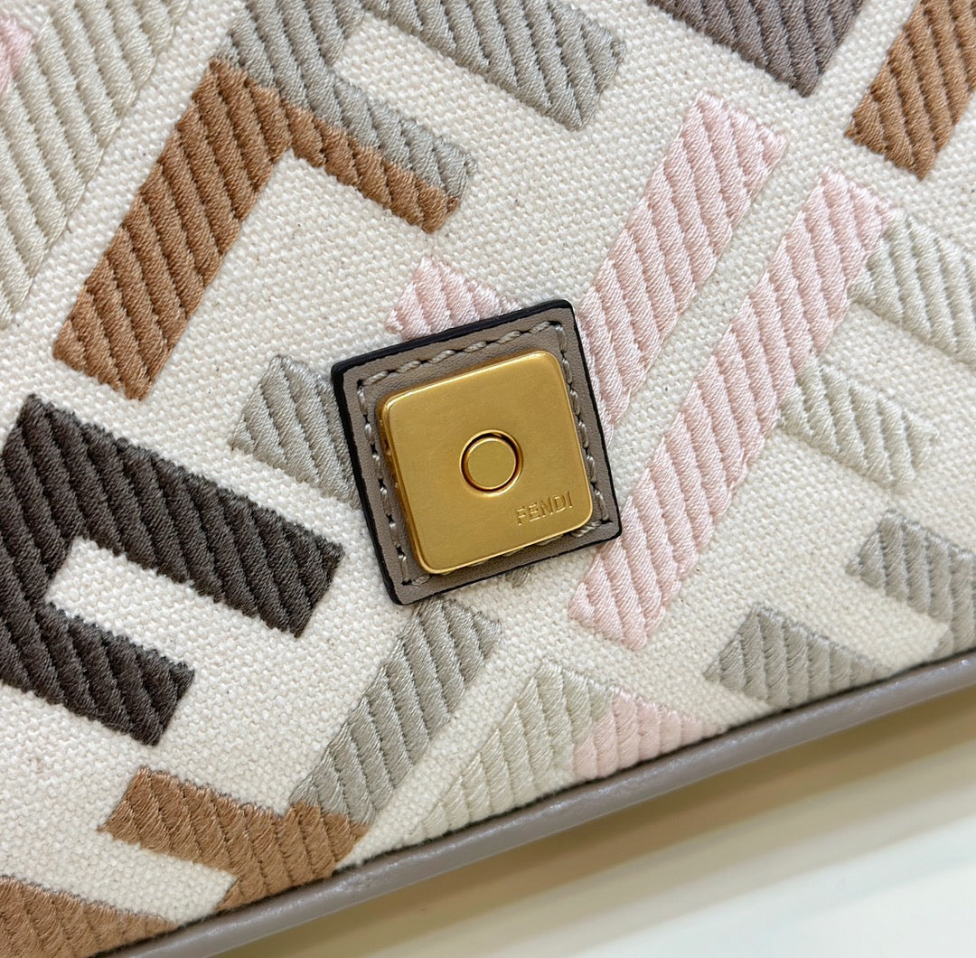 BAGUETTE CANVAS 27 BAG WITH MULTICOLOUR FF EMBROIDERY GOLD HARDWARE