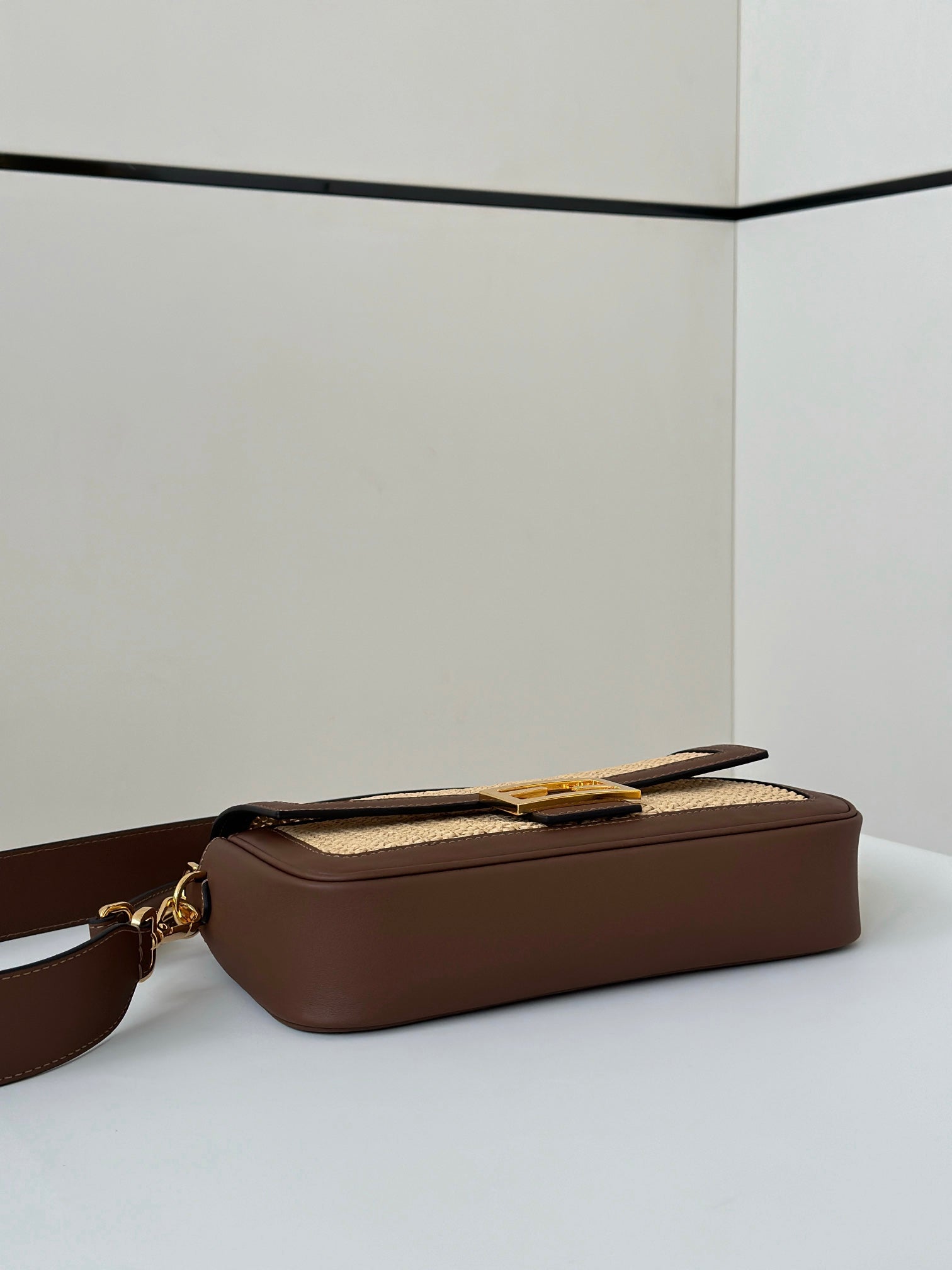 FENDI BAGUETTE 20 BAG IN BEIGE RAFFIA AND BROWN CALFSKIN WITH GOLD HARDWARE