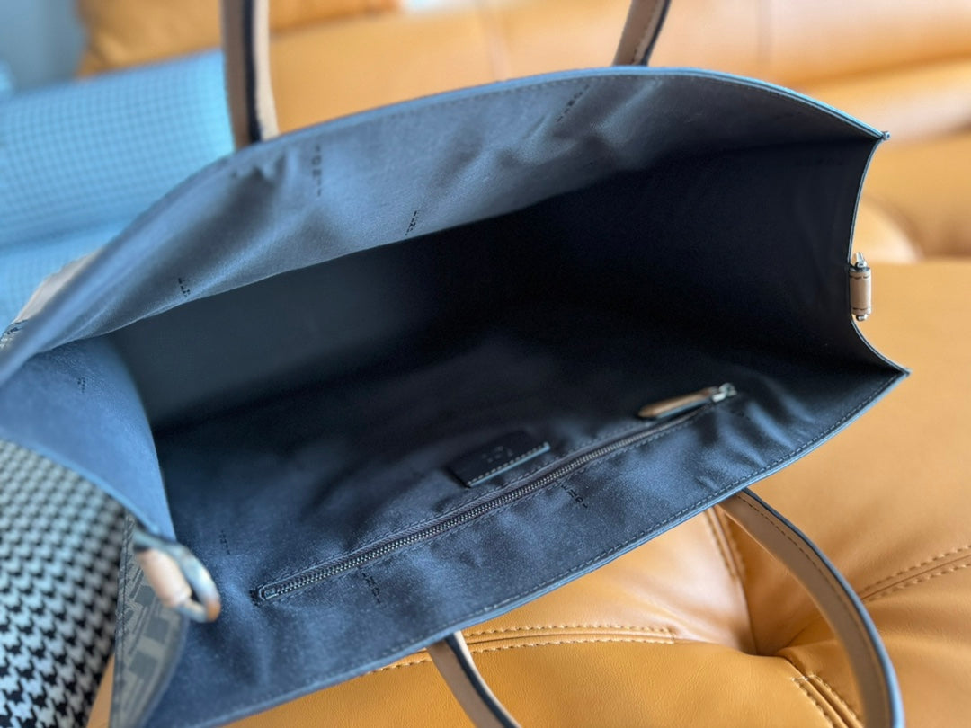 FENDI TOTE 41 BAG IN BROWN MIX BLACK MONOGRAM CANVAS GOLD HARDWARE
