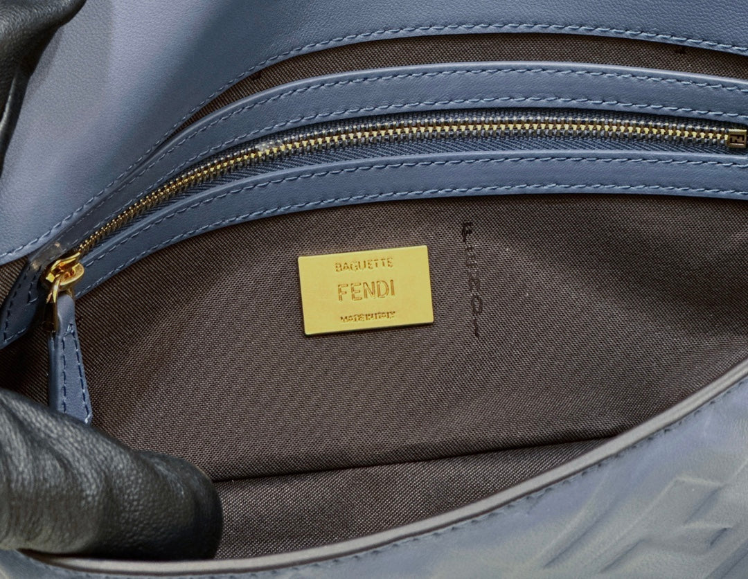 Baguette 27cm Blue Lambskin Gold Hardware