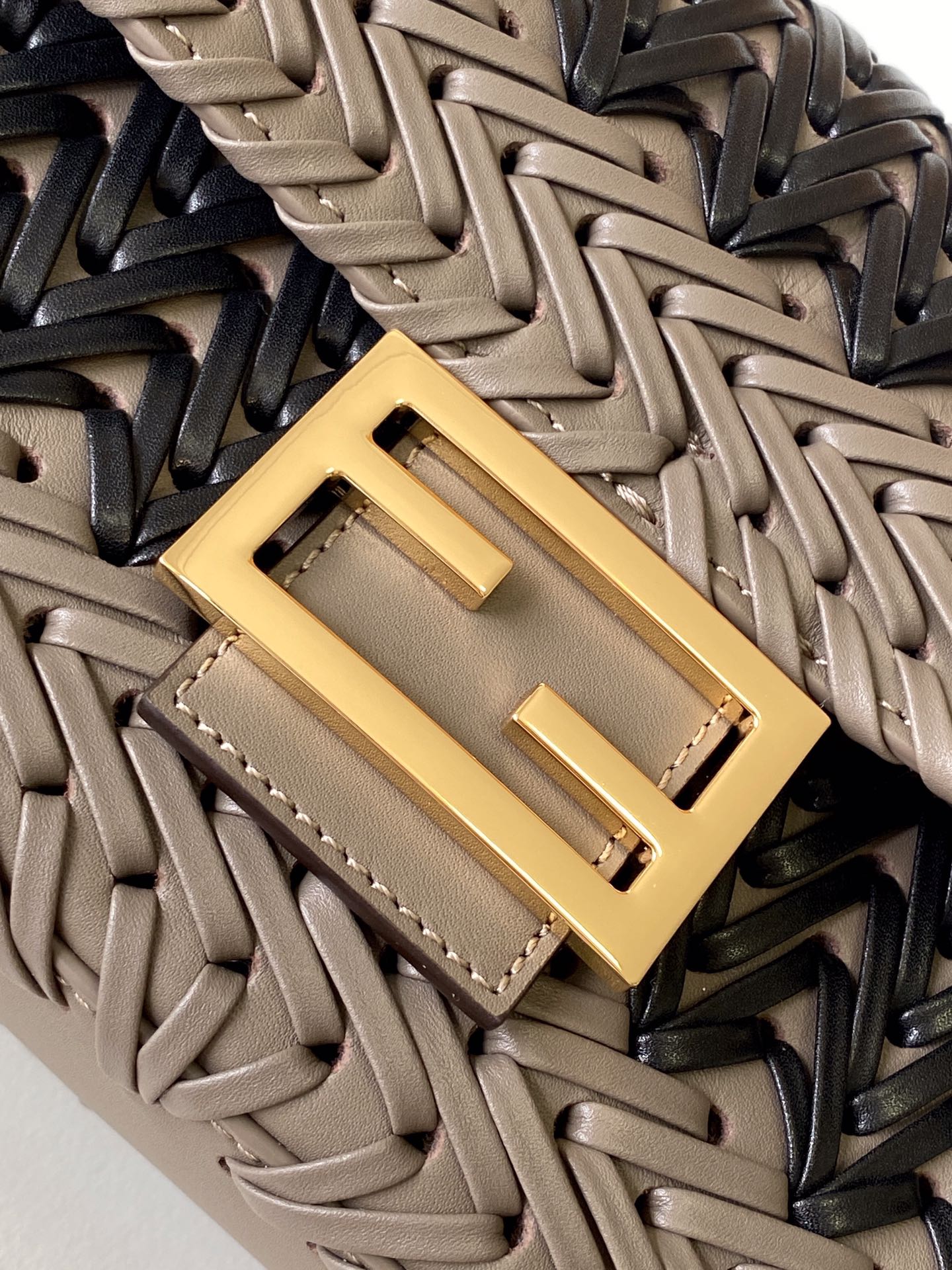 Fend Baguette 27 Bag Black Brown Sand interlaced leather Ghw
