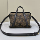 FENDI 27 BAG IN BROWN MIX BLACK JACQUARD FABRIC WITH CALFSKIN